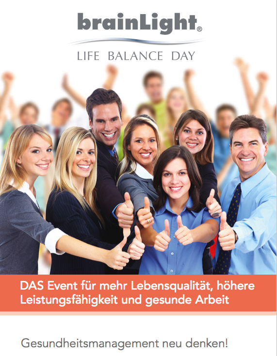 Der brainLight Life Balance Day ist ein Zukunftsevent, dass den Menschen und Organisationen Antworten auf die entscheidenden Zukunftsfragen gibt. Die Frage, die sich die Menschen und Unternehmen dabei vor allem stellen, lautet: Welche Veränderungen, welche Trends und Megatrends prägen unsere Gegenwart und welche Rückschlüsse lassen sich daraus für die Zukunft der Gesellschaft, von Unternehmen, Lebensbereichen und unsere Kultur schließen? Die Antworten sind dabei komplex und die Kunst besteht darin den Wandel begreifbar zu machen, ihn zu moderieren, zu gestalten und Zukunft so als [positive] Chance zu sehen. Es geht um Veränderung und Anpassung zur richtigen Zeit und im richtigen Tempo. Hierzu nötig sind vor allem eine gesunde Lebens- und Arbeitswelt, innovative Unternehmenskultur, gesunde Führung sowie optimal ausgerichtete Prozesse und nachhaltig ausreichende Unternehmensressourcen. Ein nachhaltiges und faires Management erfordert also auch und gerade im Betrieblichen Gesundheitsmanagement (BGM) eine gesunde Balance und einen Zukunftsplan, um wirksam zu sein.